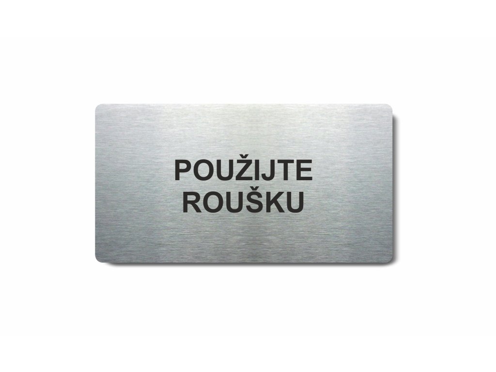 Piktogram tištěný na hliníkový štítek tepelně chemickou technologií. Štítek je zezadu opatřen oboustrannou lepenkou pro snadnou instalaci.