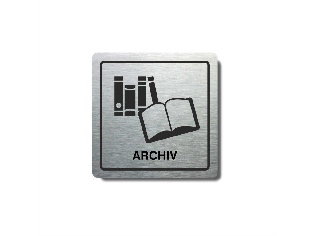 Piktogram tištěný na hliníkový štítek tepelně chemickou technologií. Štítek je zezadu opatřen oboustrannou lepenkou pro snadnou instalaci.