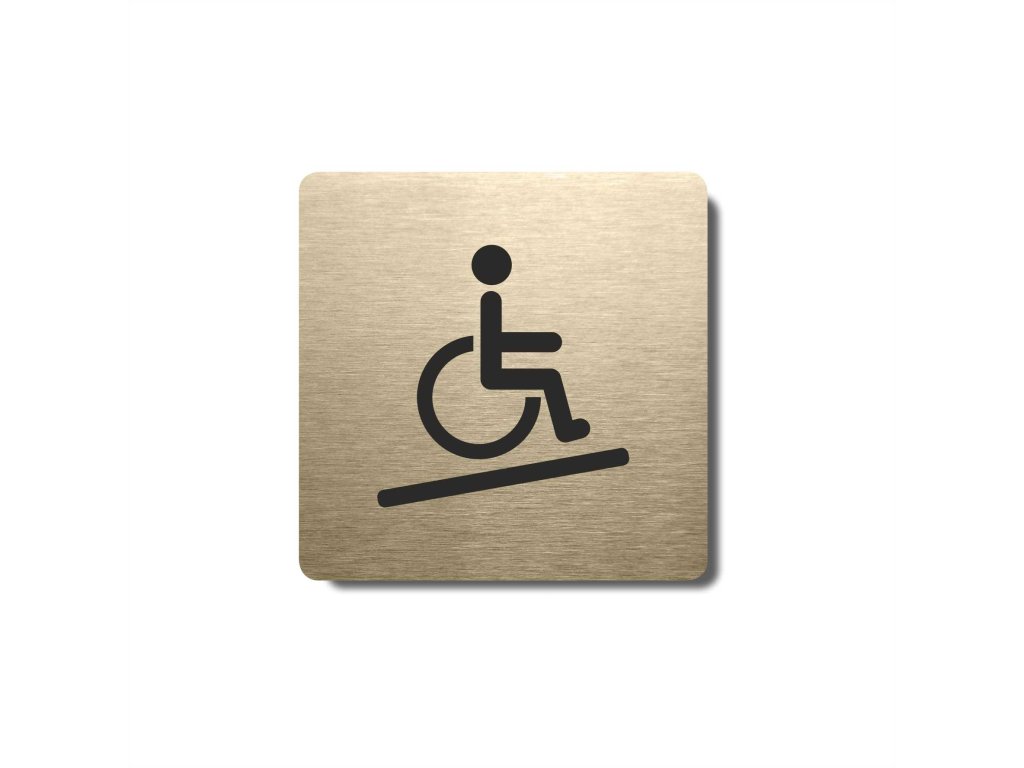 Piktogram tištěný na hliníkový štítek tepelně chemickou technologií. Štítek je zezadu opatřen oboustrannou lepenkou pro snadnou instalaci.