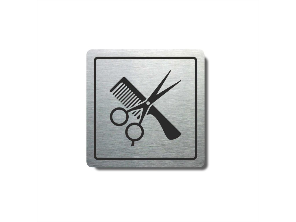 Piktogram tištěný na hliníkový štítek tepelně chemickou technologií. Štítek je zezadu opatřen oboustrannou lepenkou pro snadnou instalaci.
