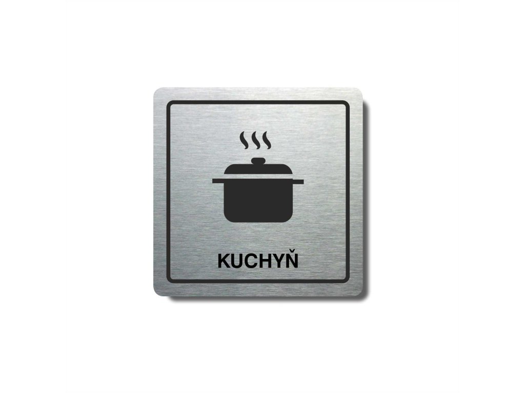 Piktogram tištěný na hliníkový štítek tepelně chemickou technologií. Štítek je zezadu opatřen oboustrannou lepenkou pro snadnou instalaci.