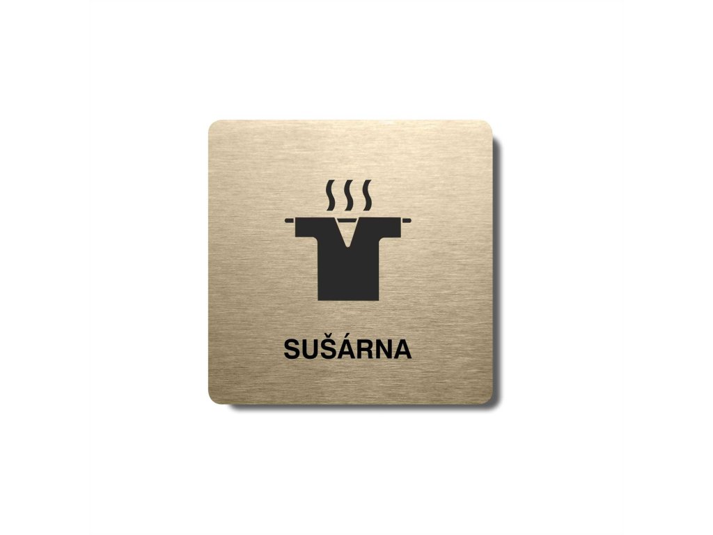 Piktogram tištěný na hliníkový štítek tepelně chemickou technologií. Štítek je zezadu opatřen oboustrannou lepenkou pro snadnou instalaci.