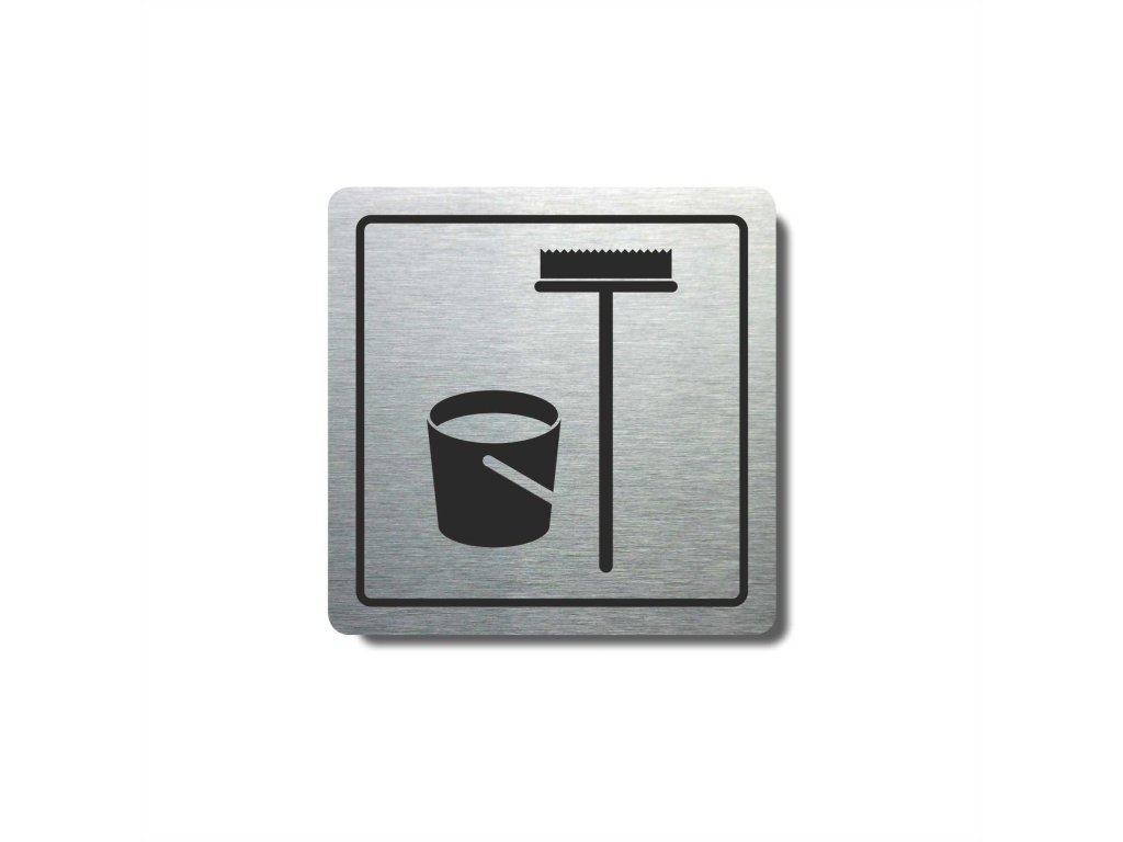 Piktogram tištěný na hliníkový štítek tepelně chemickou technologií. Štítek je zezadu opatřen oboustrannou lepenkou pro snadnou instalaci.